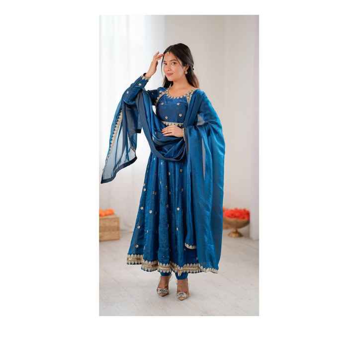 Ensemble de tenue de travail en soie premium avec broderie à motifs, pantalon de travail micro-brodé à l'avant et à l'arrière, taille élastique et dupatta brodée au fil.
