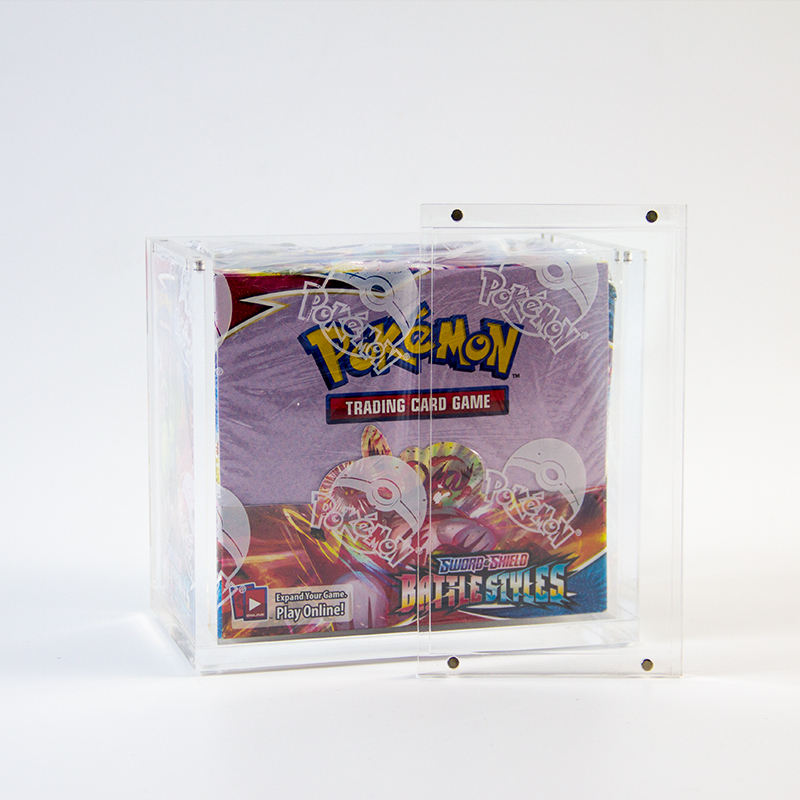 Premium tcg pokemoned booster box acrylic uv protective display with magnets accessory storage showcase