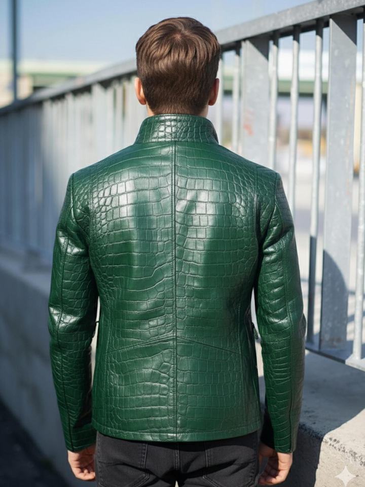 Premiums crocodile embossed original cowhide leather jacket with luxury texture durable stylish craftsmanship for fashion buyers