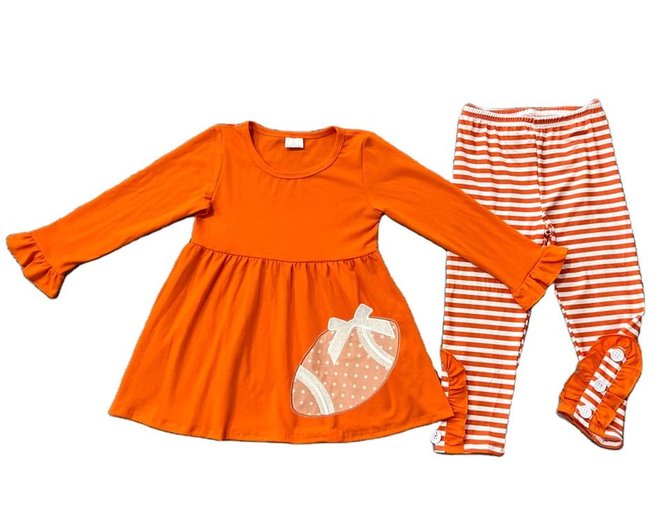 Précommande Football Broderie Game Day Designs Enfants Filles 2 Pièces Tenues Orange Stripe Vente en gros Ensembles de vêtements pour enfants