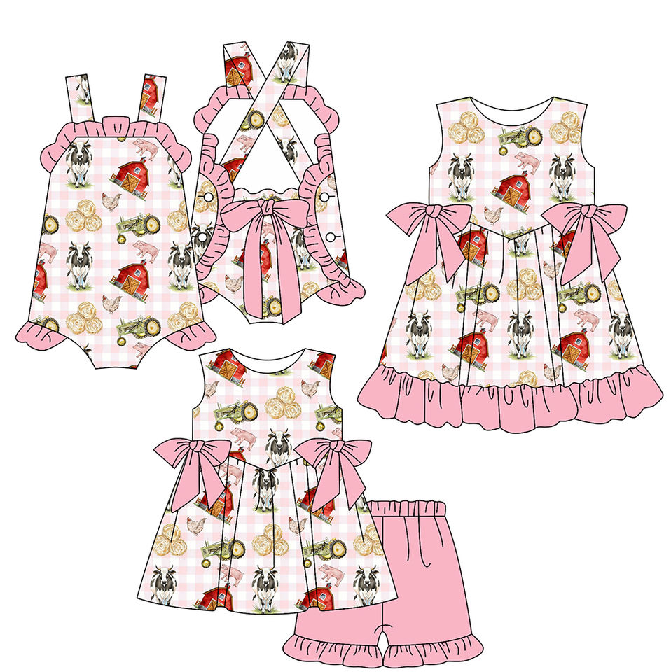 Précommande MOQ 5 Vêtements d'été pour enfants à motifs animaux de la ferme, collection de vacances, vente en gros, pour frères et sœurs, style boutique de mode, prix usine