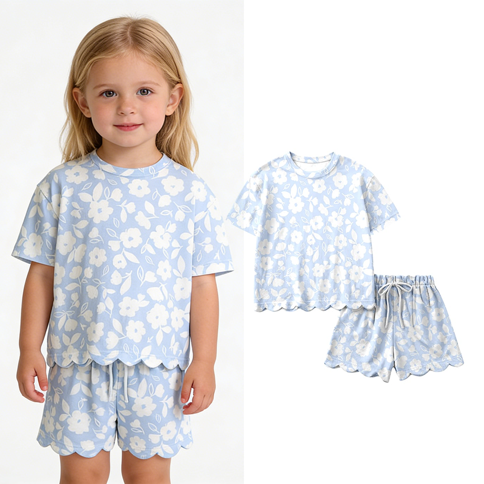 Précommande MOQ 5 : Tenues d'été confortables et mignonnes pour filles, style boutique, avec nœuds et volants, pour tout-petits, prix usine, vente en gros