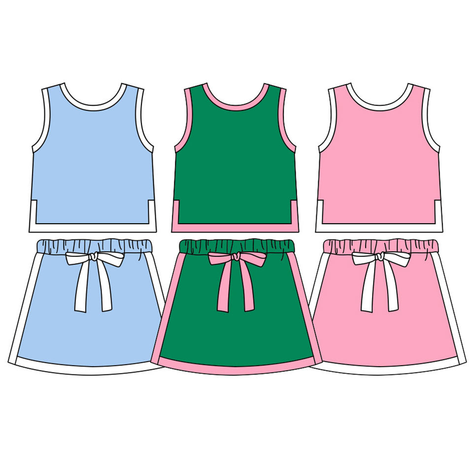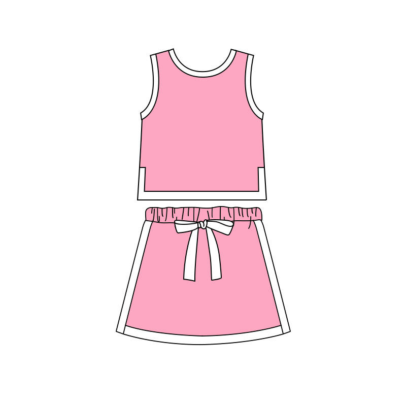 Précommande MOQ 5 Pyjamas d'été pour petites filles couleur unie en coton biologique et élasthanne, col doux, logo, vente en gros, mode enfantine
