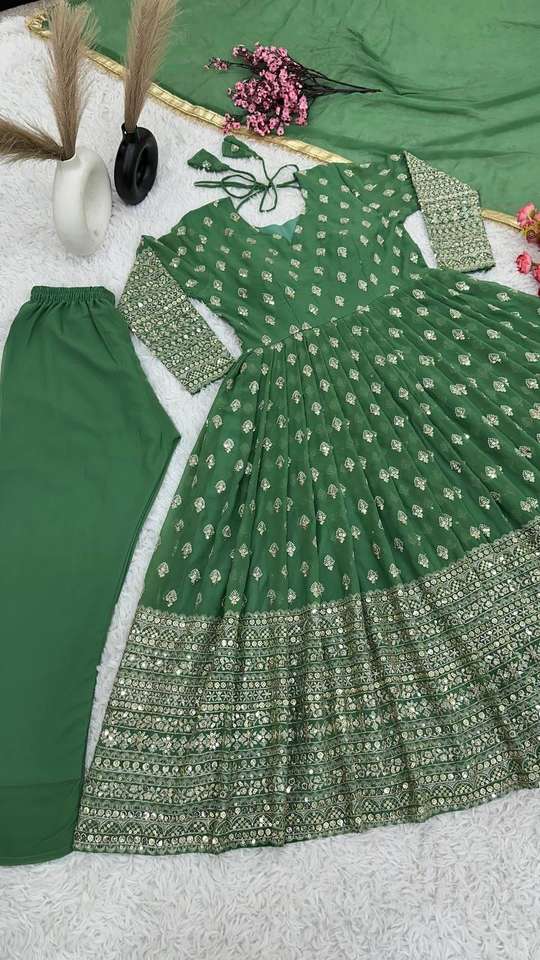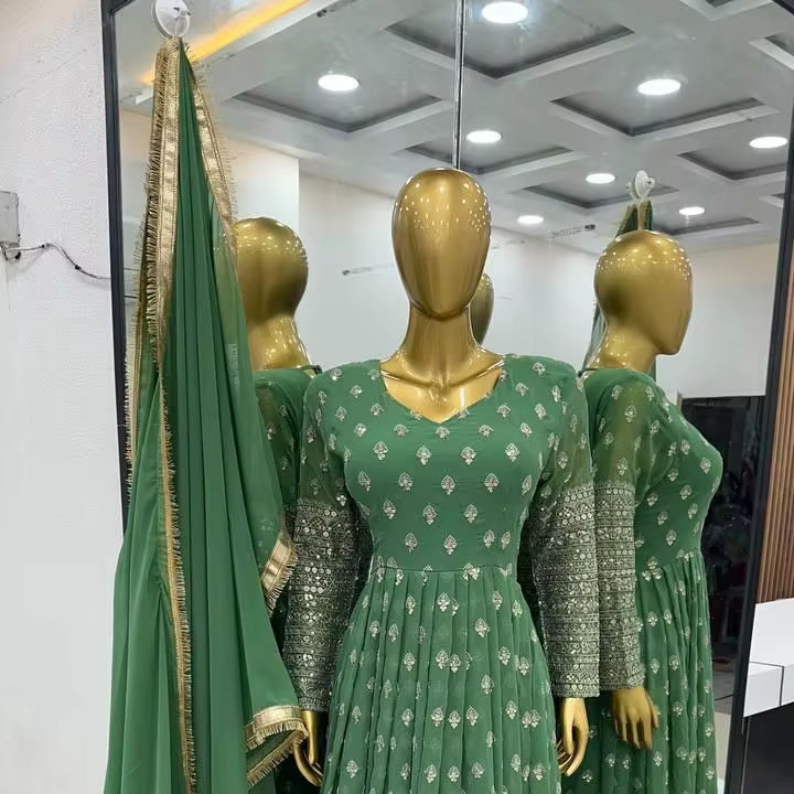 Présentation de la collection de créateurs Robe de travail à séquences de broderie lourde en soie Chinon avec manches longues et bordure en dentelle sur quatre côtés Dupatta