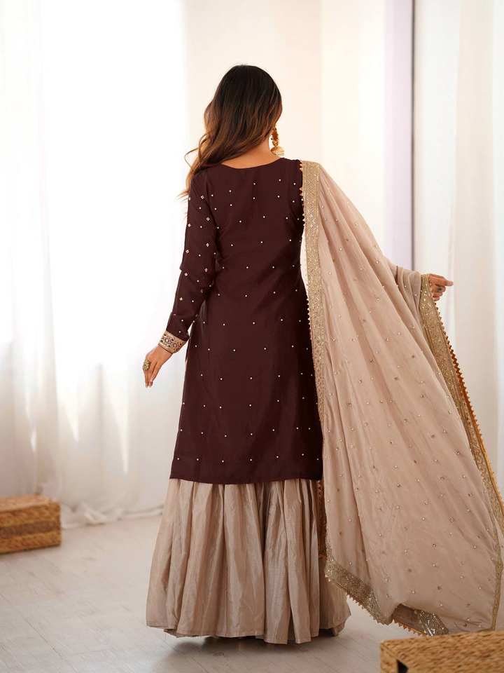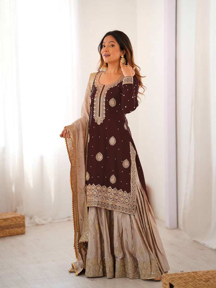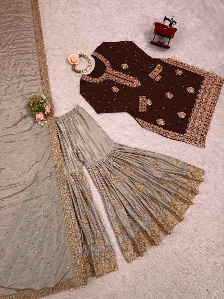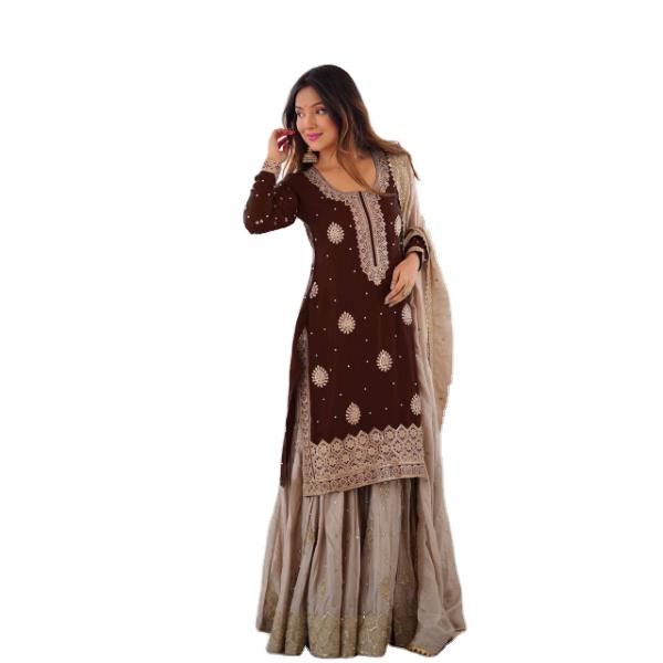 Présentation de la nouvelle collection de créateurs : Vêtements pour femmes en pur faux georgette épais, broderie, motifs Dori-Sequence, décontractés, réversibles, tout-en-un