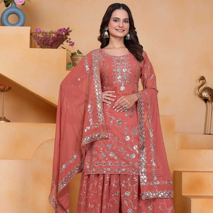 Présentation du nouveau costume de Sharara orange en fausse georgette brodé de créateur avec séquence de travail brodé fête de mariage exclusive