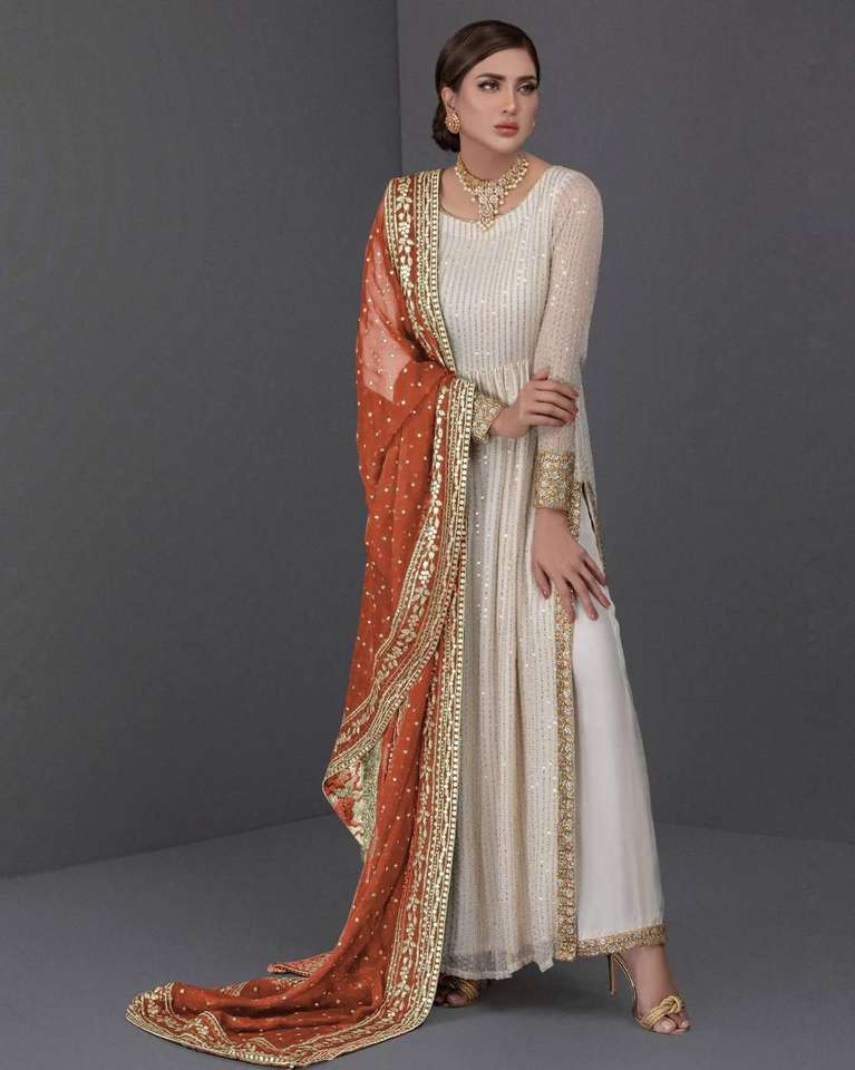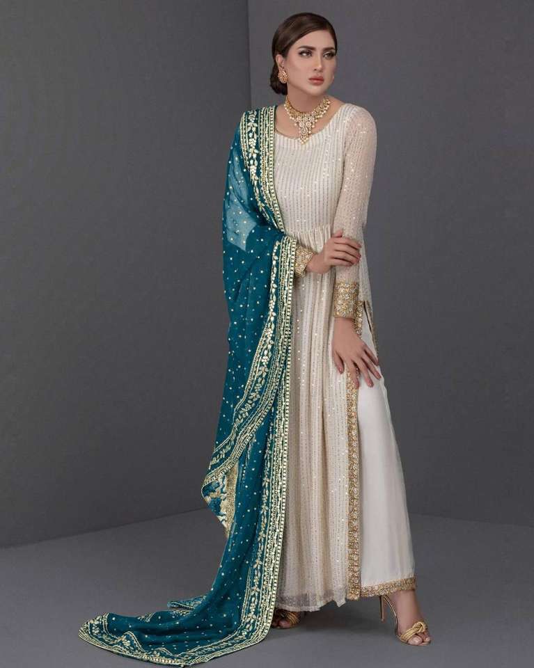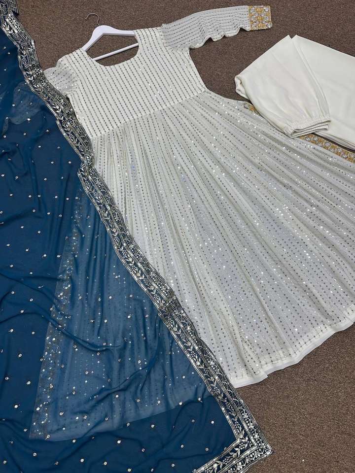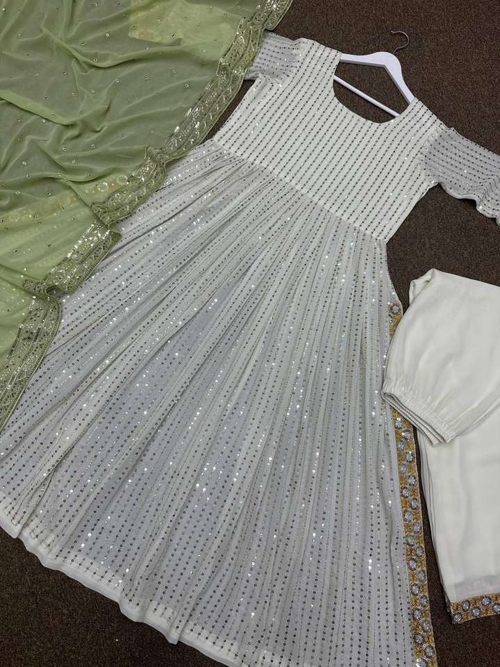 Nom du produit:Fausse Georgette Sequence Broderie Kurti & Palazzo Pantalon Dupatta