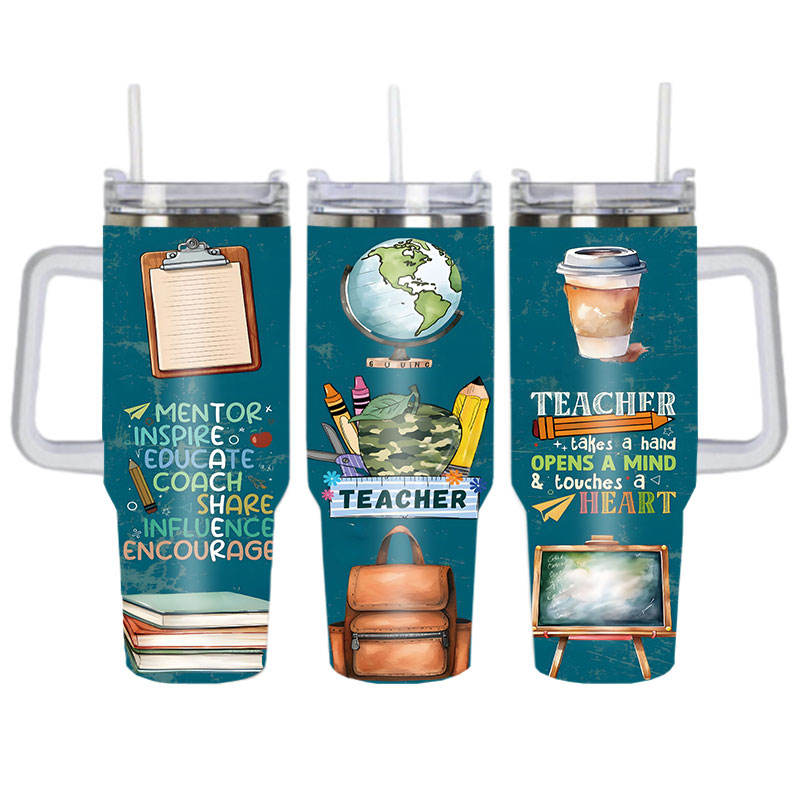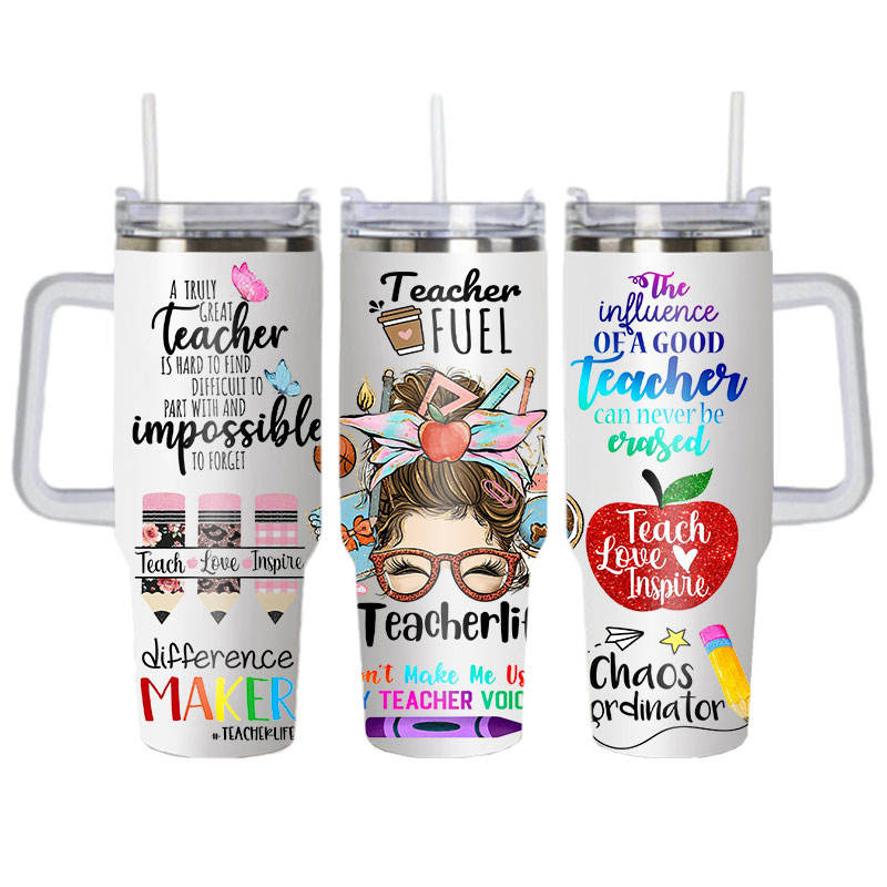 Cadeaux pour enseignants : Gobelet isotherme en acier inoxydable de grande capacité 40 oz avec poignée et paille, tasse à café de voyage pour voiture, cadeaux pour la Fête des Enseignants