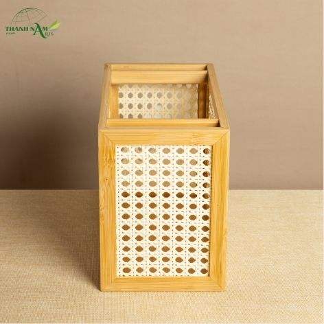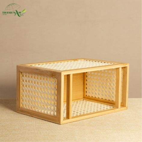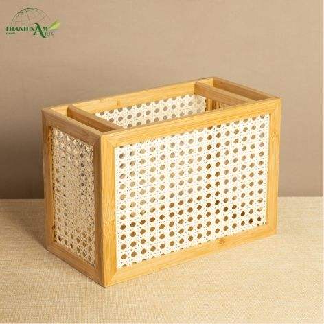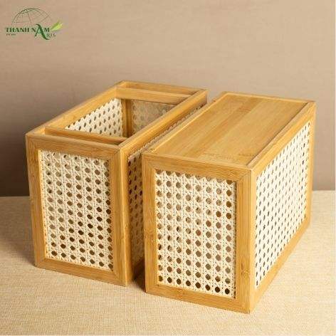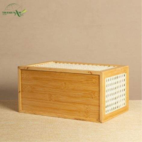 Boîte de rangement en bambou pressé avec panneau tissé, finition laquée, design écologique fait main pour la restauration et l'usage domestique