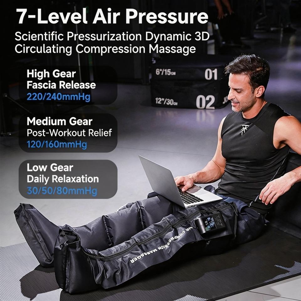 Pressothérapie professionnelle, bottes de compression d'air séquentielles, masseur complet pour les pieds et les jambes, bottes de récupération rapide pour les athlètes
