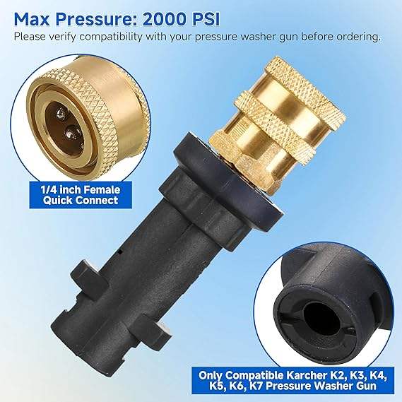 Adaptateur de nettoyeur haute pression raccord en laiton avec 5 buses de pulvérisation 1/4 adaptateur de pistolet rapide