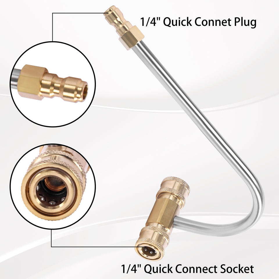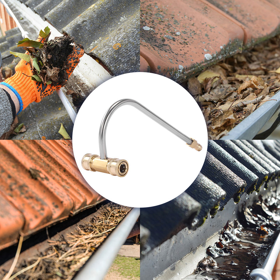 Accessoire de nettoyeur de gouttière pour nettoyeur haute pression Baguette coudée à connexion rapide de 1/4 pouces pour le nettoyage de gouttière