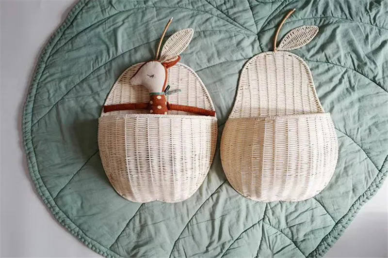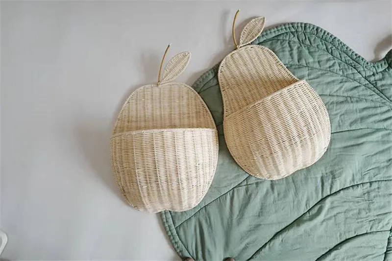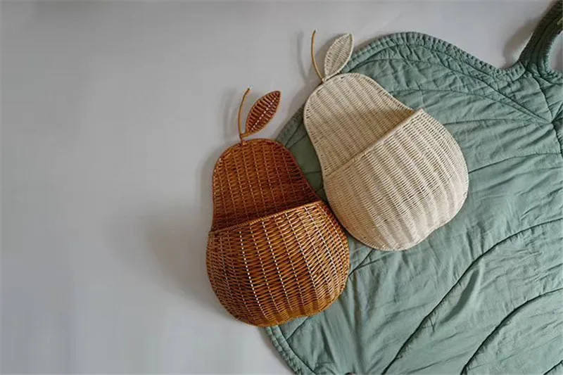 Panier mural en rotin naturel en forme de poire, design scandinave, idéal pour la chambre d'enfant, le salon, rangement pratique