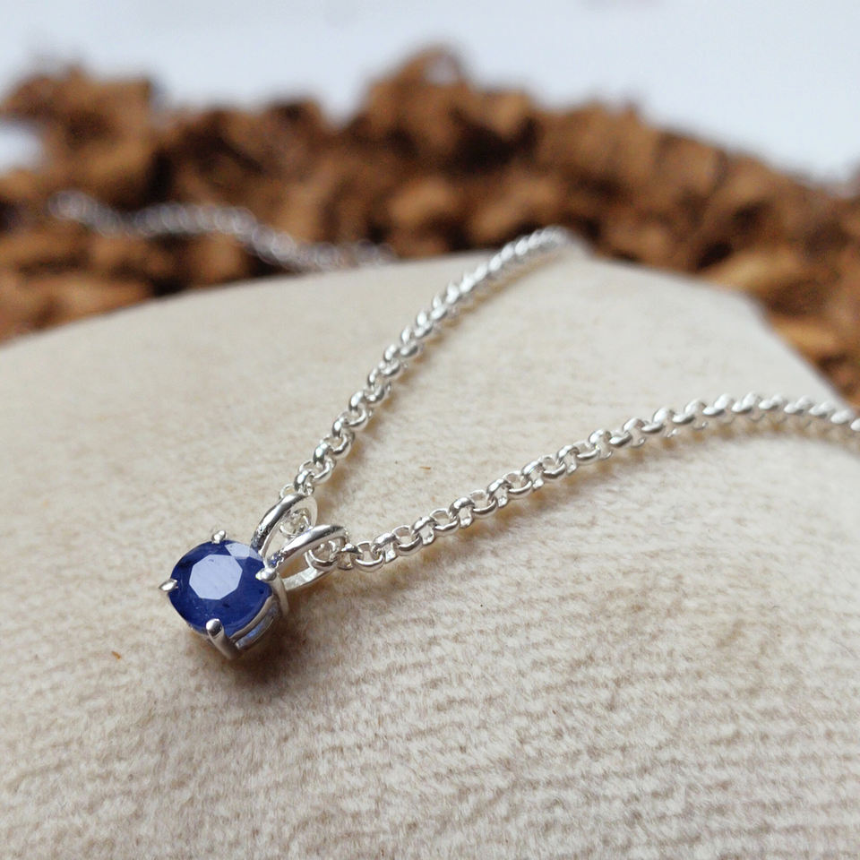 Joli ensemble de broches rondes en argent Sterling 5mm, saphir (teint), collier à breloques en pierre de naissance, collier Boho en pierre de naissance