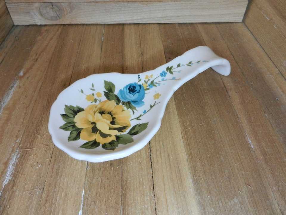 Couleur:Repose-cuillère en céramique à motif roses jaunes et sarcelles ou comme personnalisé