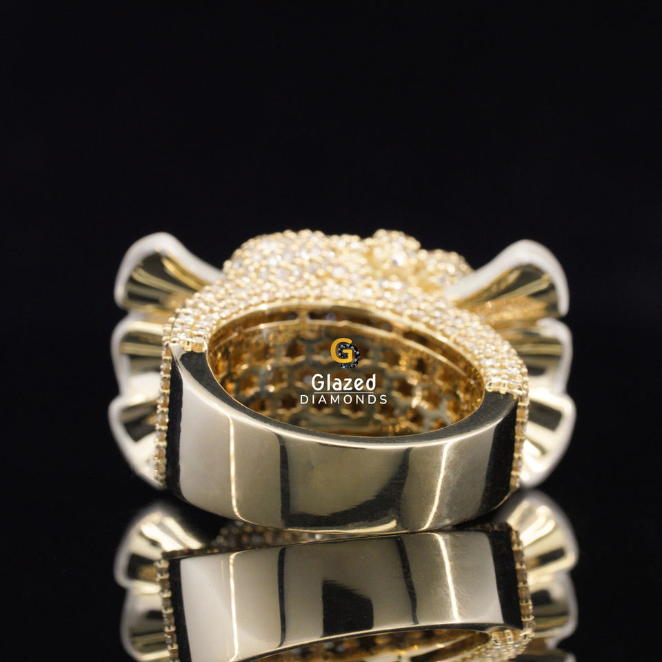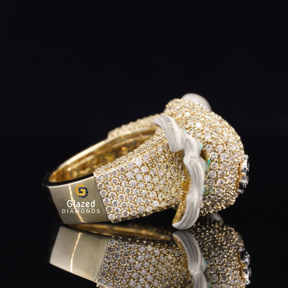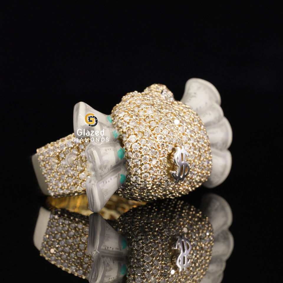 Joli buste de bague Hip Hop avec des diamants ronds de laboratoire taillés en brillant sertis en or massif 14kt pour unisexe