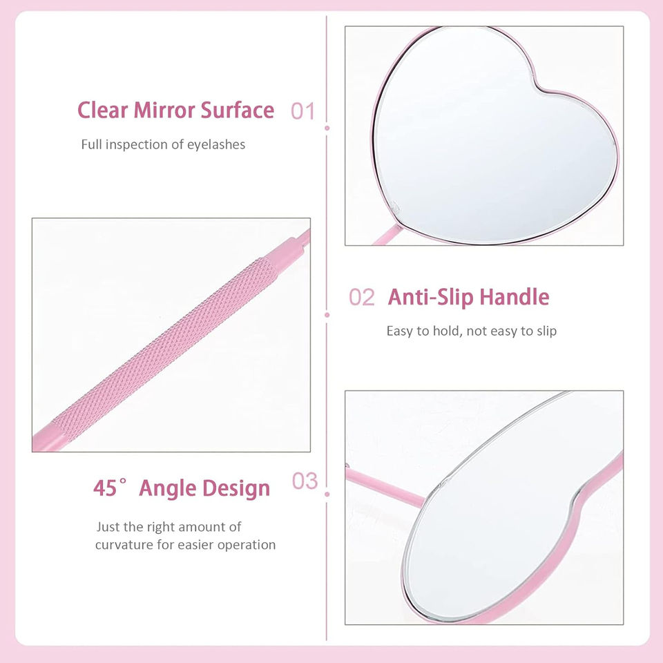 Pretty memory Large Lash Mirror, Stainless Steel Eyelash Makeup Mirror for Lash Extension Heart Shaped Tools
