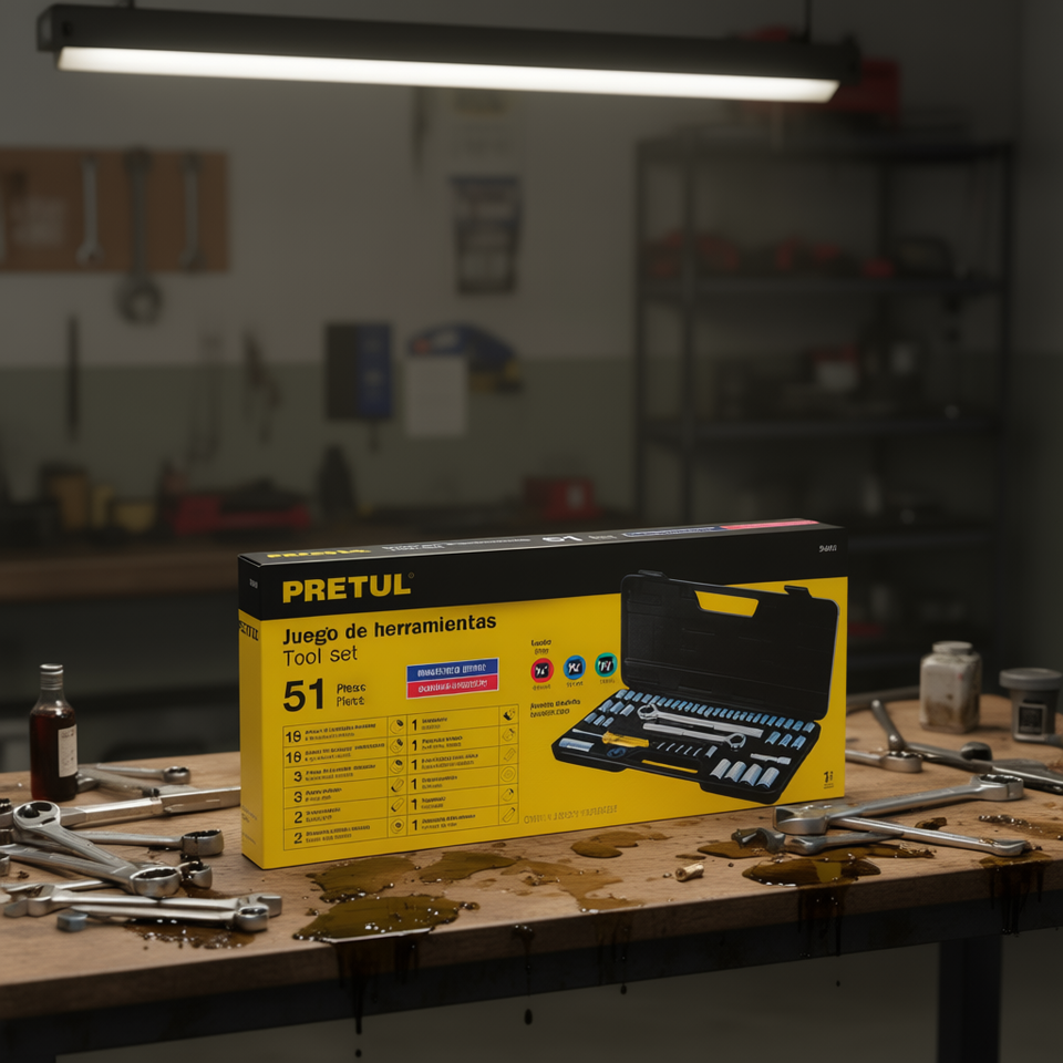 Ensemble d'outils de mécanicien professionnel Pretul de 51 pièces avec outils en acier au chrome-vanadium, clés combinées, douilles, coffret rigide
