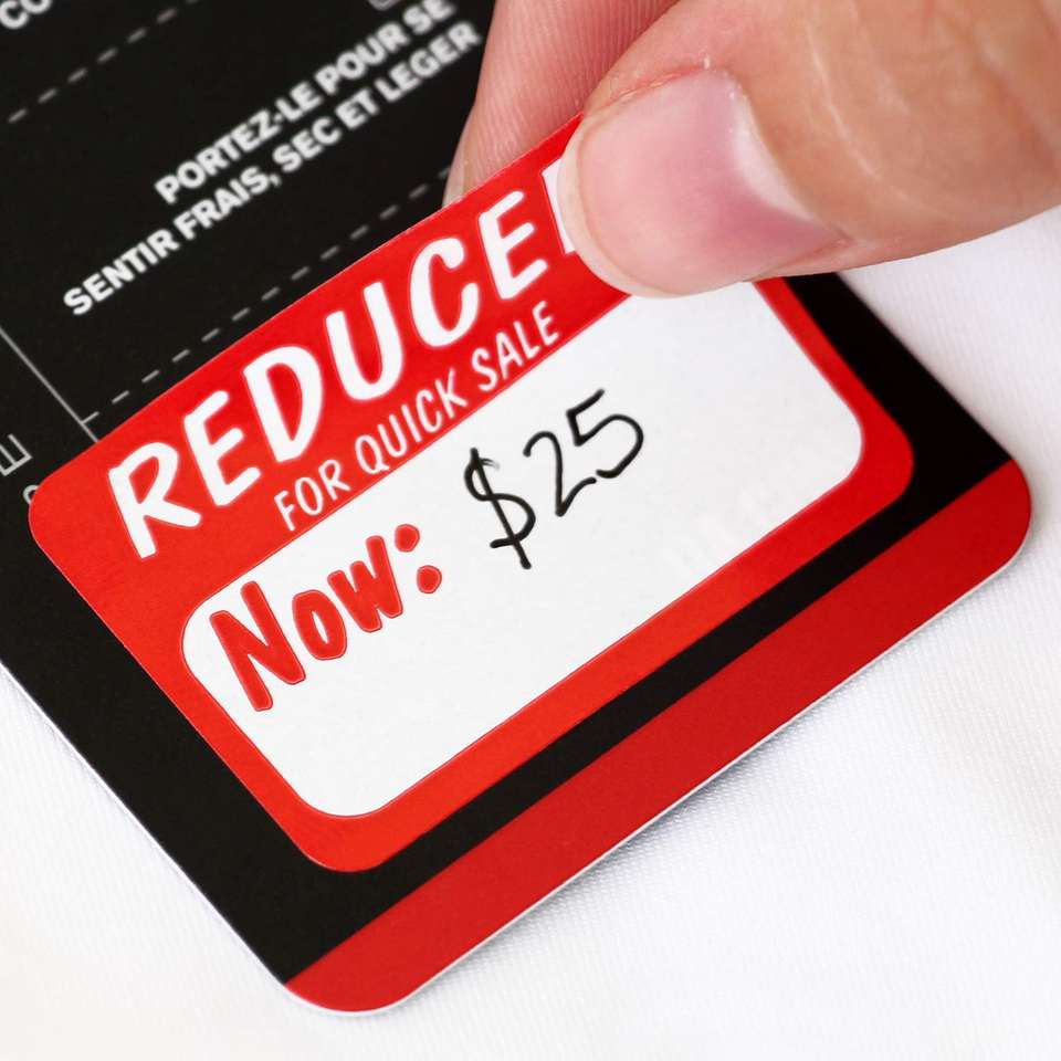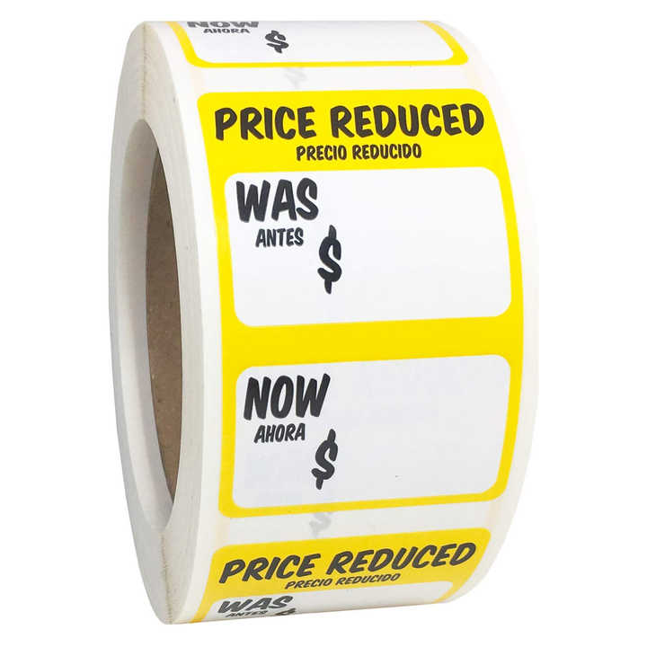 Étiquettes de prix inscriptibles en papier jaune à prix réduit Vente au détail personnalisée Étiquettes adhésives de promotion rectangulaires de 2x3 pouces Autocollants
