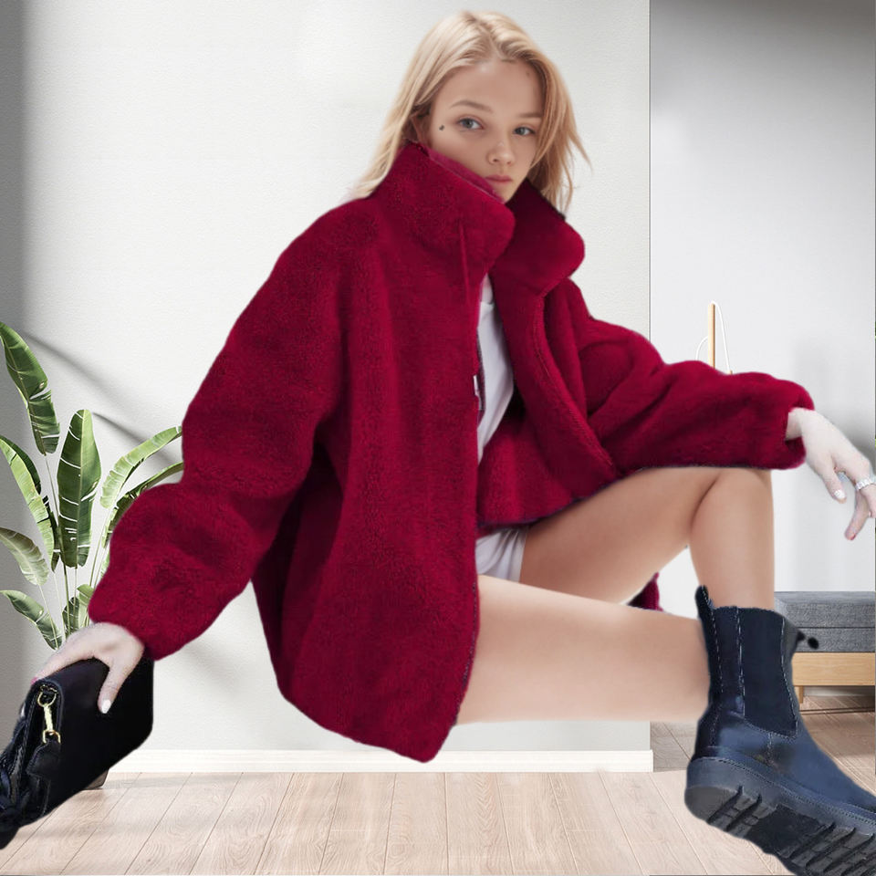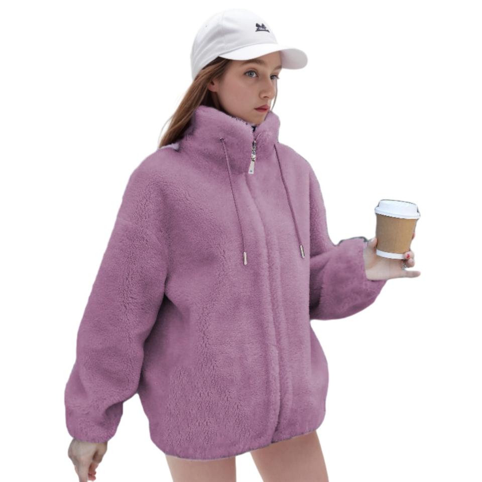 Manteau d'hiver épais et chaud en fourrure, grande taille, couleur unie, manches longues, fermeture éclair, deux poches, tendance