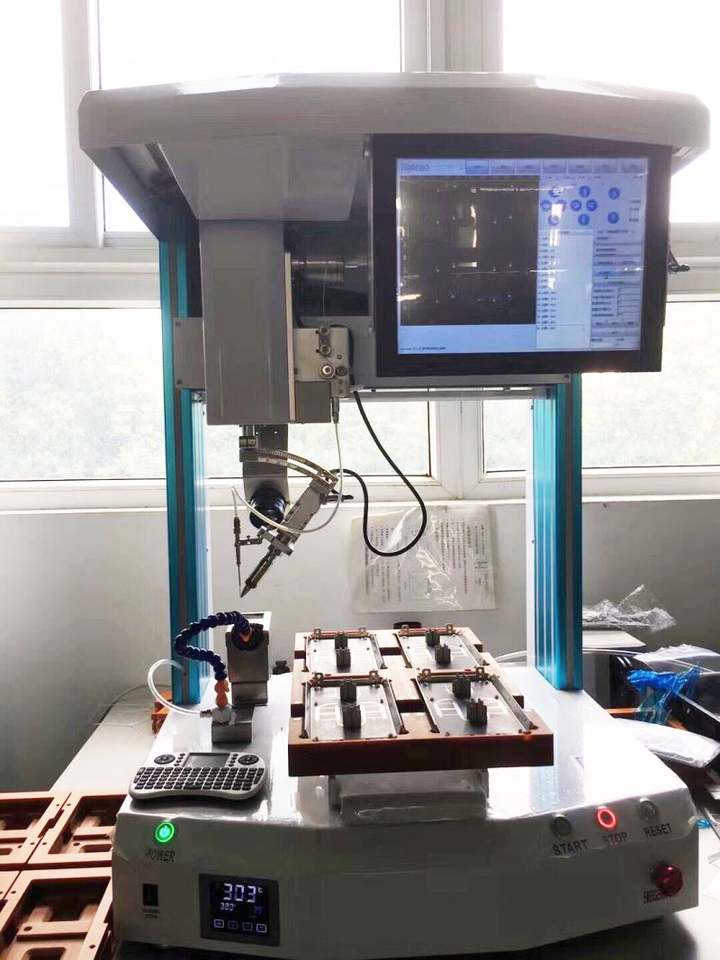 4 axes (X,Y,Z,R) + alimentateur d'étain