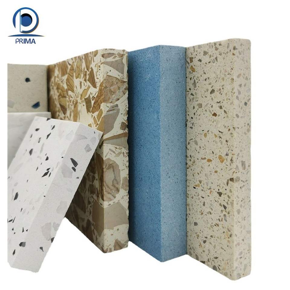 Prima Personnalisable Haut de Gamme Artificielle Terrazzo Pierre Rustique Particule Forme Solide Surface Feuille Blazing Marbre Hôtels Planchers