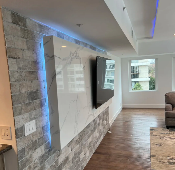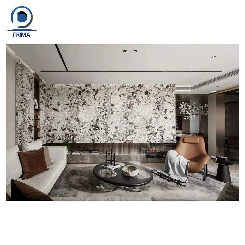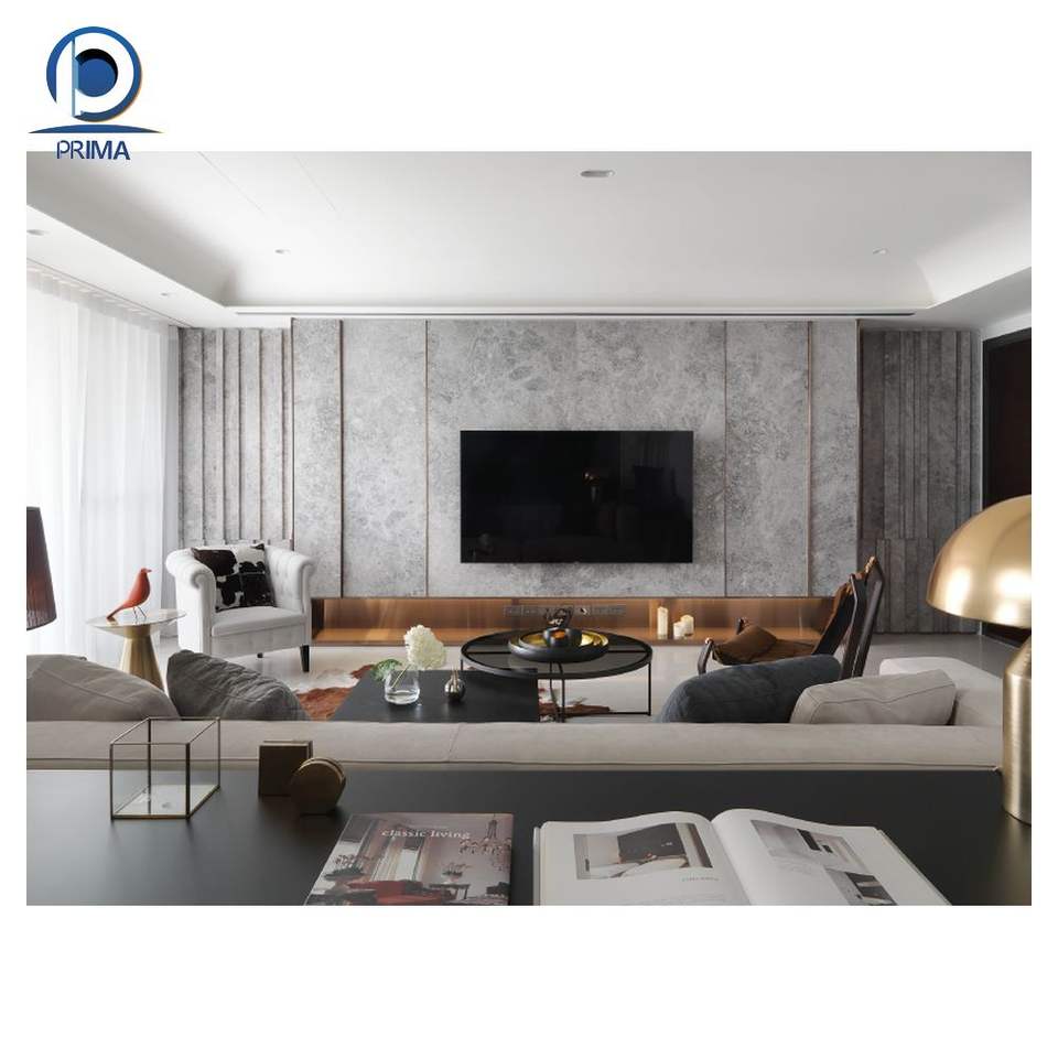 Prima luxe Quartz pierre panneau mural salon TV fond caractéristique mur brillant mat finition