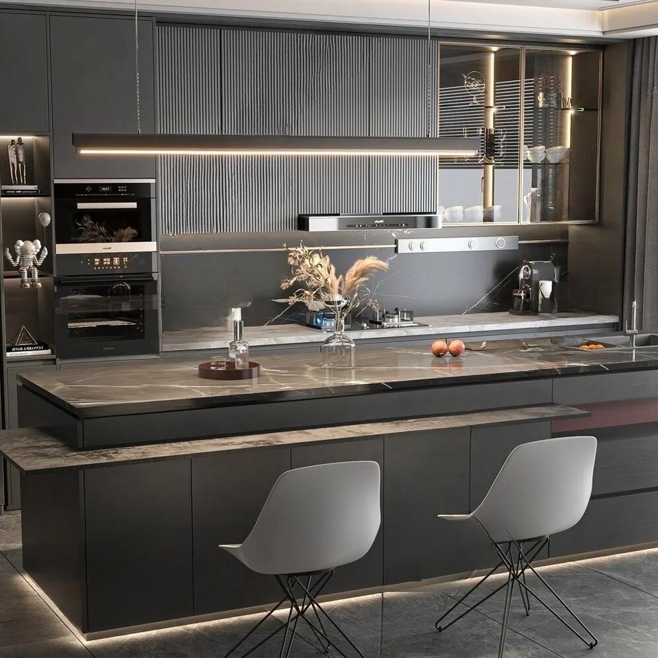 Meubles de cuisine Prima Modern Slim Shaker Style, armoires de cuisine en bois massif à cadre étroit avec plan de travail en quartz