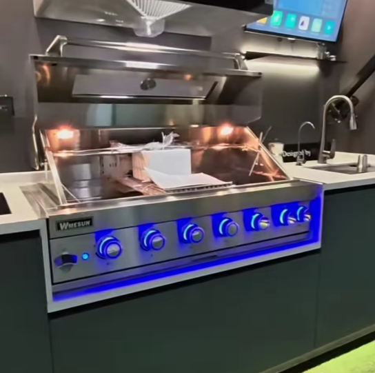 Cuisine extérieure Prima, îlot barbecue, armoires en acier inoxydable intégrées, grill résistant aux intempéries, grilles avec four à pizza, cuisine extérieure
