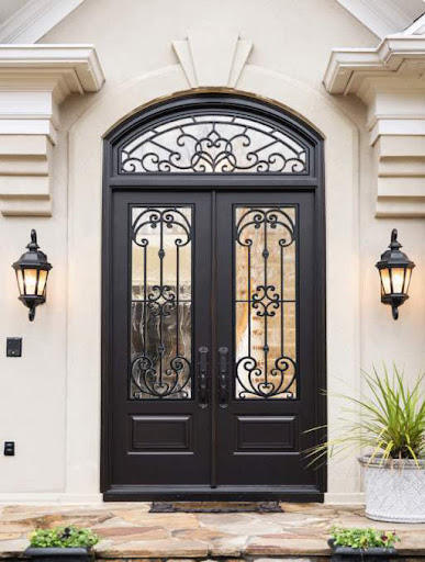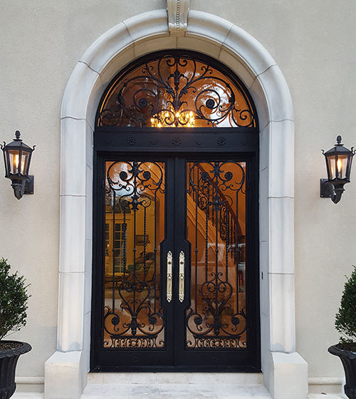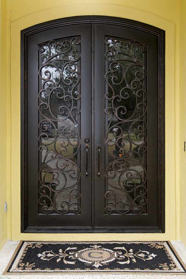 Porte d'entrée en fer forgé faite à la main par Prima Powerful Factory, design personnalisé avec des éléments décoratifs en fer