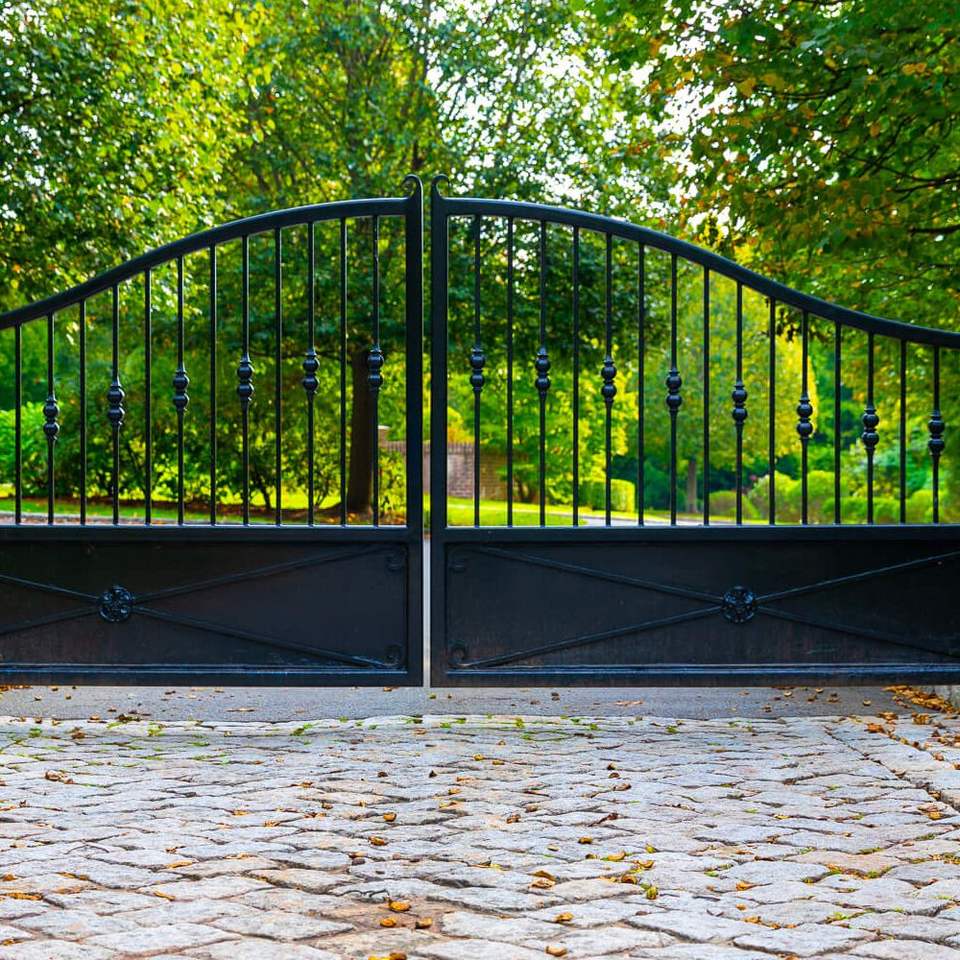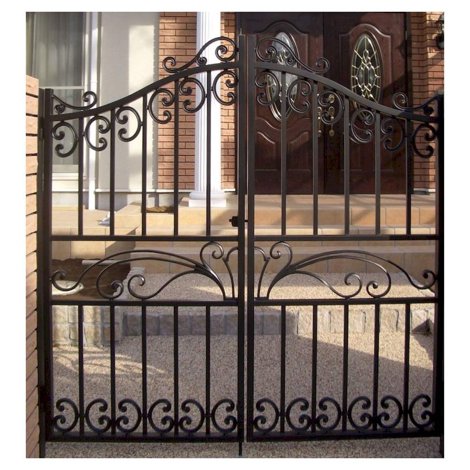 Porte française en fer forgé Prima avec poignées courbes et panneaux en verre transparent pour l'intérieur et l'extérieur