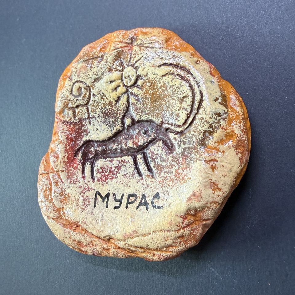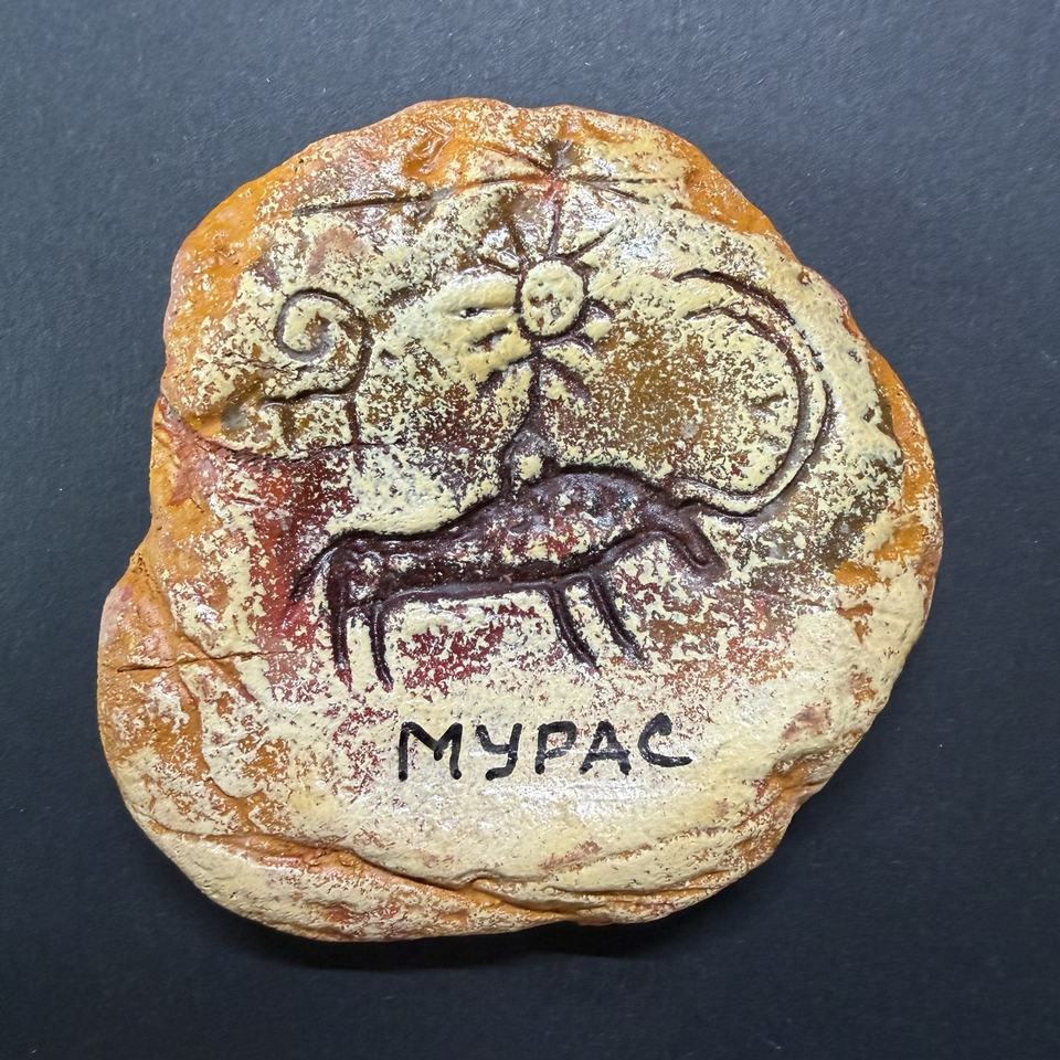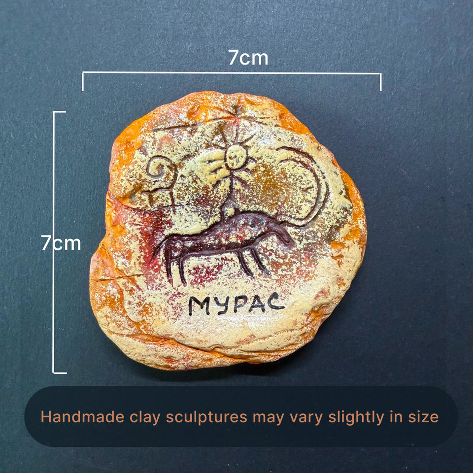 Aimant de réfrigérateur artisanal en argile Primal Conquest, motif pétroglyphique ancien, cadeau de manifestation de l'âme d'Asie centrale
