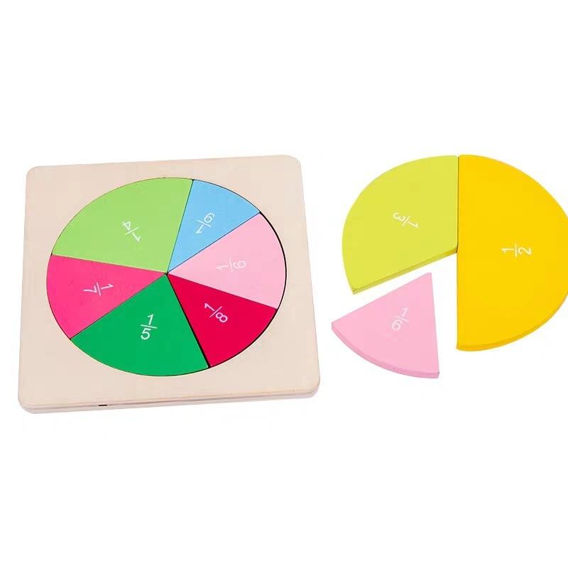 Disque d'apprentissage des fractions en bois et tableau cognitif pour élèves du primaire - Outils pédagogiques éducatifs pour enfants (4-6 ans)