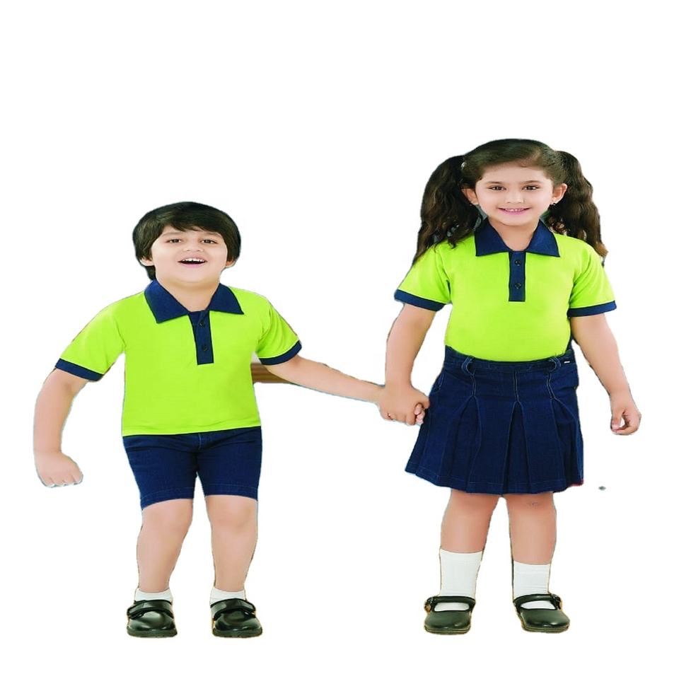 Ensemble de robe d'uniformes d'école d'étudiant primaire garçons t-shirt short en jean filles t-shirt jupe en jean conception unie pour le Style de confort