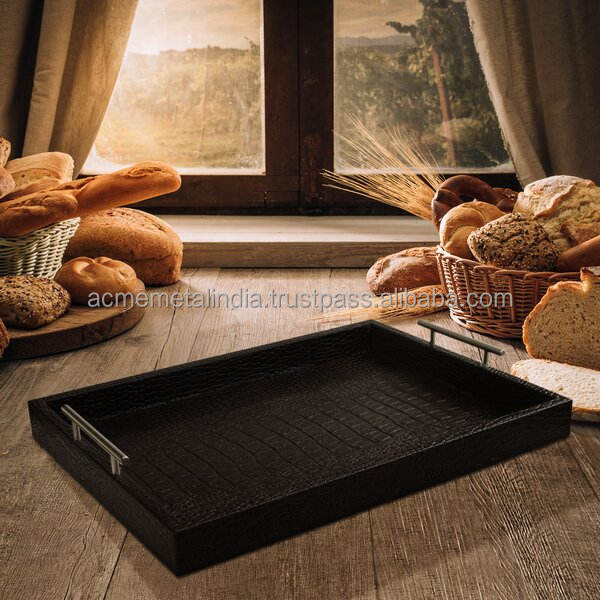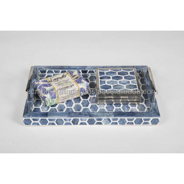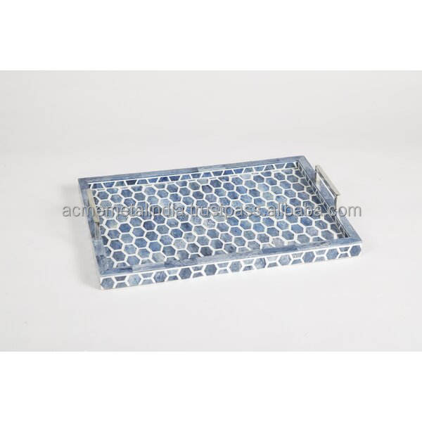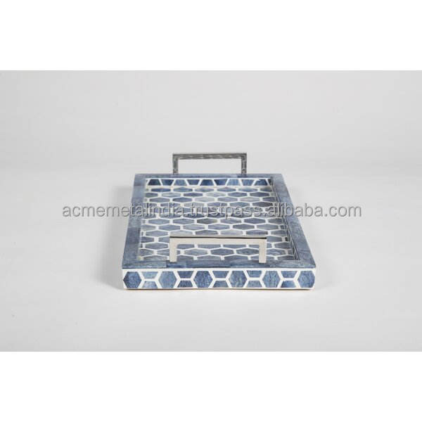 Plateau de service alimentaire en incrustation d'os de qualité supérieure Plateau à dessert en bois de forme et de taille personnalisées pour hôtels Design le plus vendu
