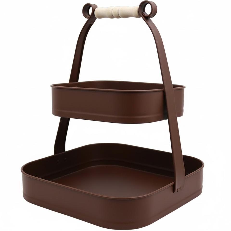 Plateau à Dessert à Deux Niveaux en Fer de Forme Carrée avec Poignée, Revêtement en Poudre de Couleur Bronze de Qualité Supérieure, au Meilleur Prix
