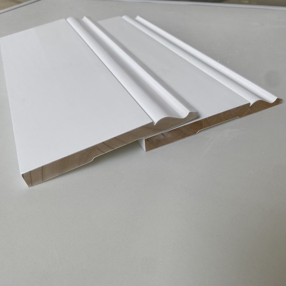 Nom:Plinthes et architraves en pin FJ à joints de doigt, apprêtées blanc
