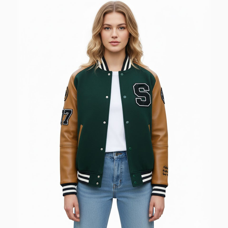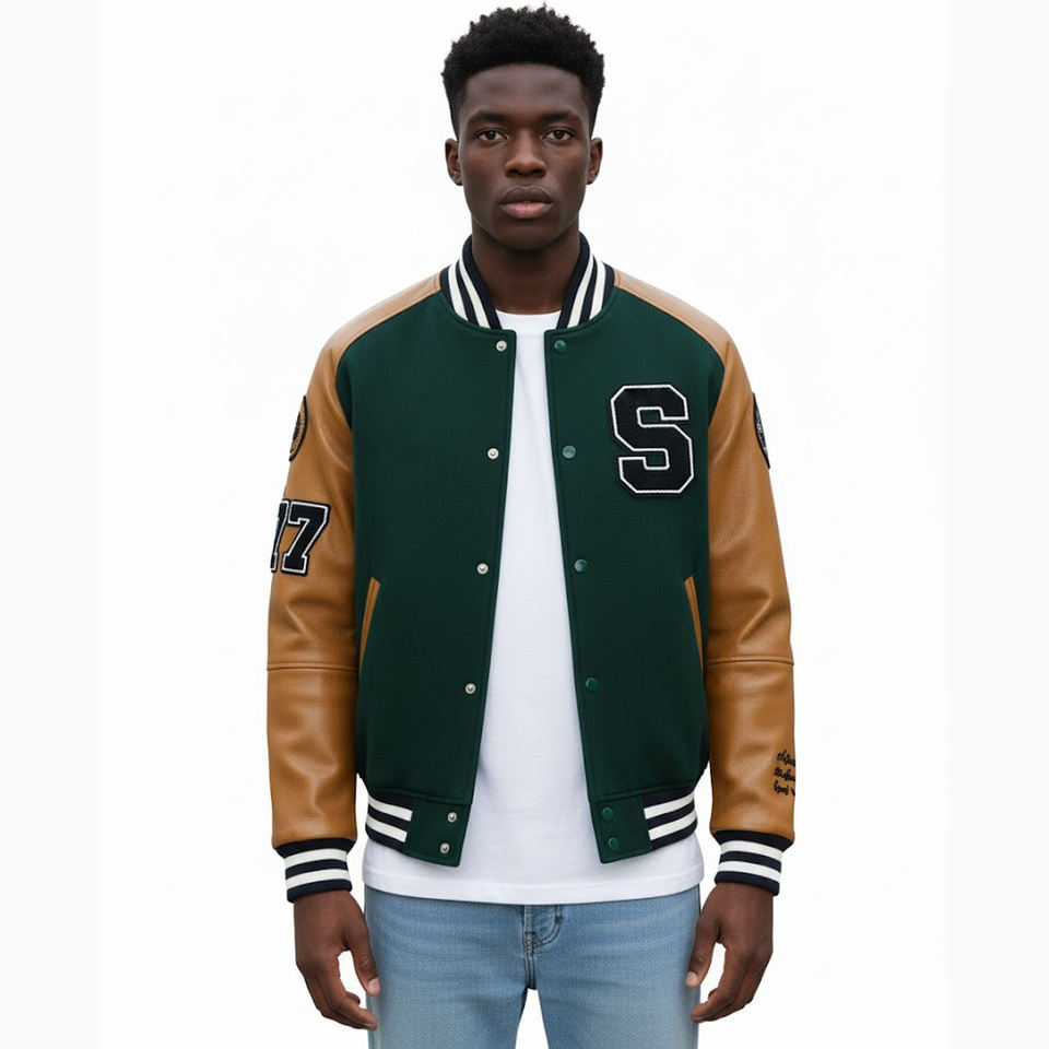 Veste universitaire de qualité supérieure avec broderie personnalisée de haute qualité, manches en laine et en cuir, pour un look unisexe.