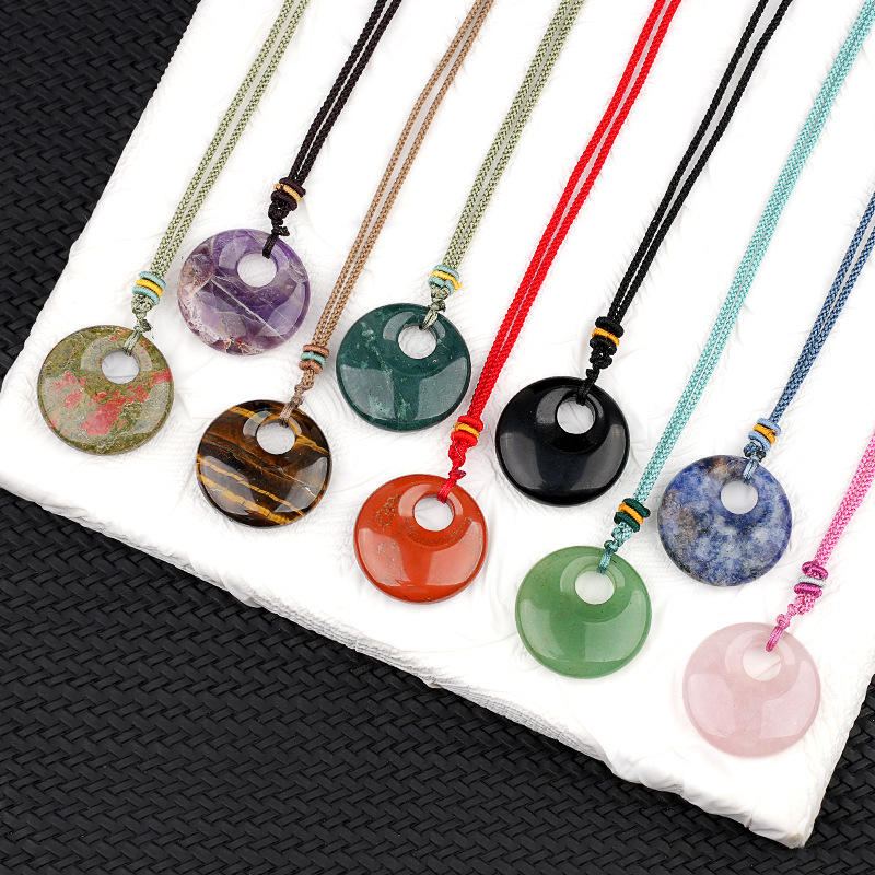 Collier pendentif de fiançailles en chaîne de corde à boucle de princesse avec cristal de guérison, forme de cercle porte-bonheur pour femmes et hommes