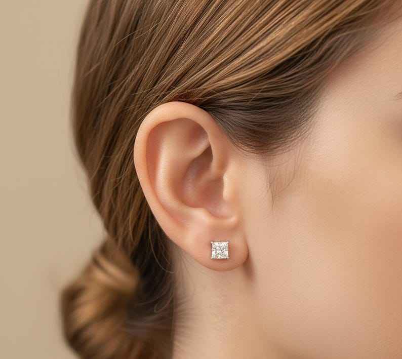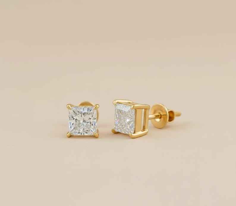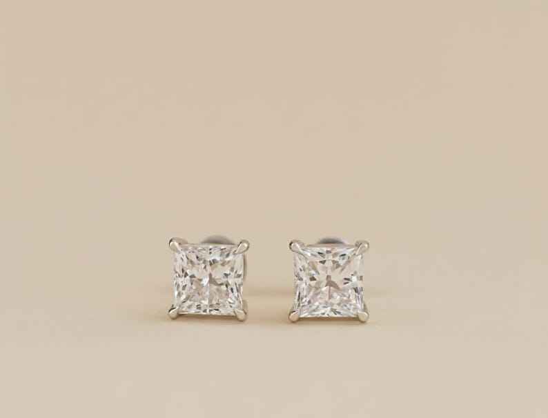 Conception: Boucles d'oreilles solitaires avec diamant taille princesse