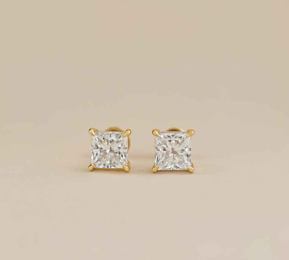 Boucles d'oreilles solitaires avec diamant taille princesse