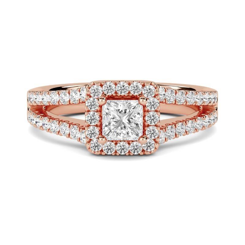 Bague et alliance assorties serties de diamants taille princesse, 1,00 ct de diamant de laboratoire, en or jaune, blanc, rose et platine 18 carats