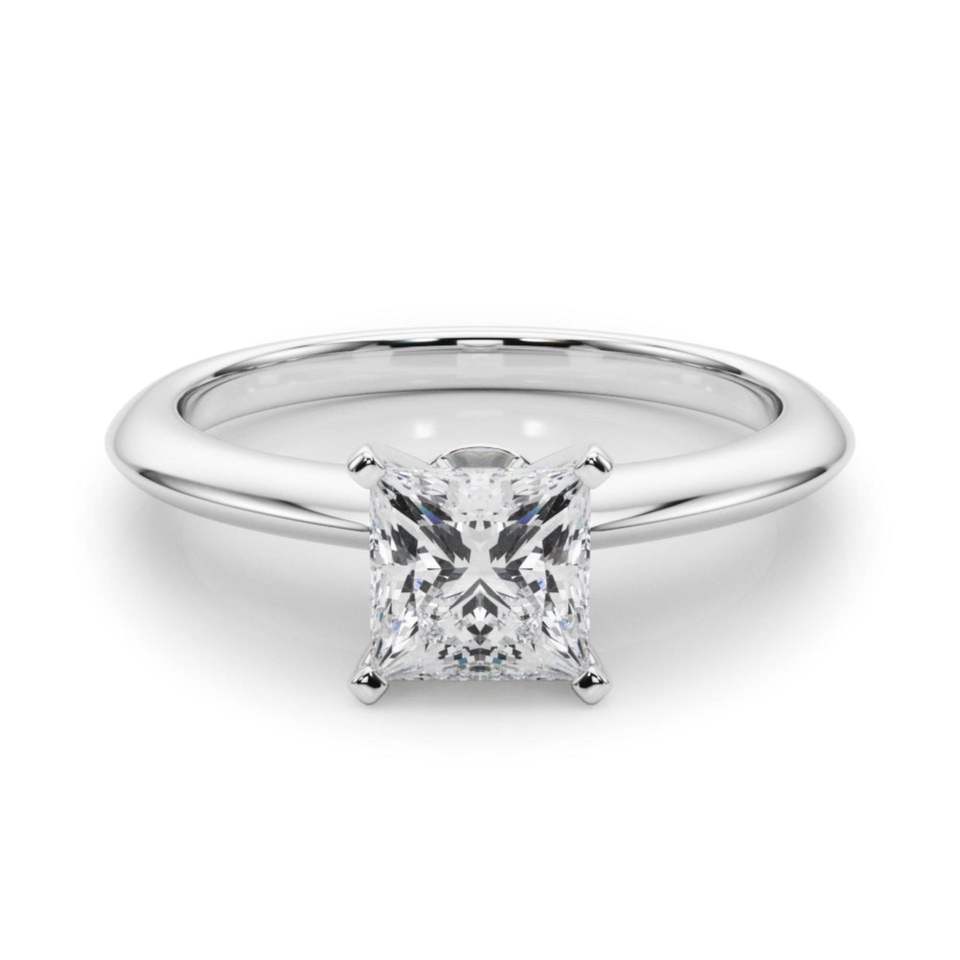 Bague de fiançailles solitaire en diamant coupe princesse pour femme
