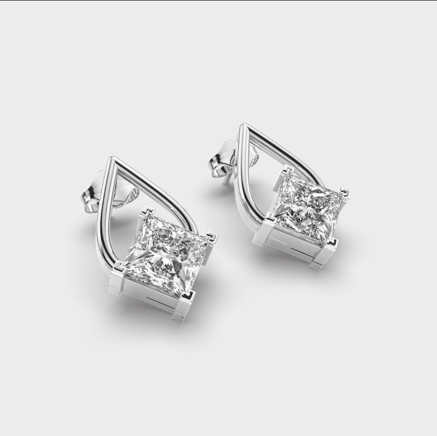 Boucles d'oreilles clous en diamant de laboratoire taille princesse 2,7 carats certifiées IGI, plaquées rhodium, or blanc/rose/jaune 18 carats, pour mariage et anniversaire
