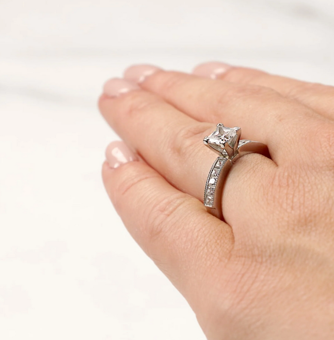Bague de Fiançailles et de Mariage Religieuse en Argent Sterling pour Femme, Sertie de Moissanite Taille Princesse et Pavé, Idéale pour Cadeau, Fête ou Anniversaire