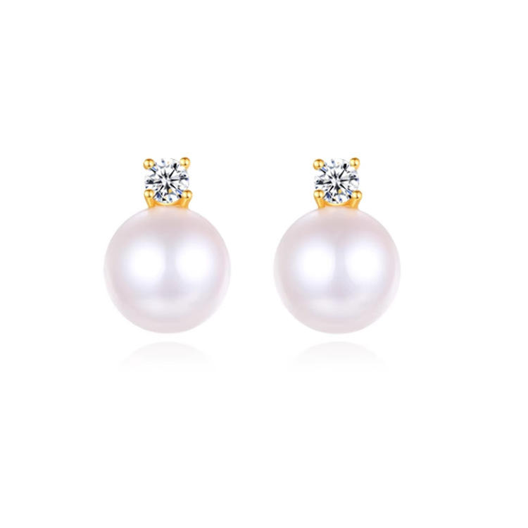 Princess Diana S925 Silver Freshwater Flawless Pearls Earrings 7-8mm Tempered with Diamond Studs Simple Design