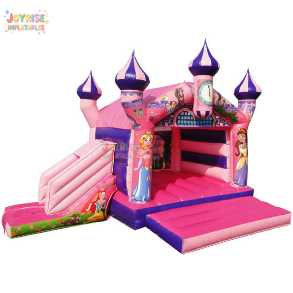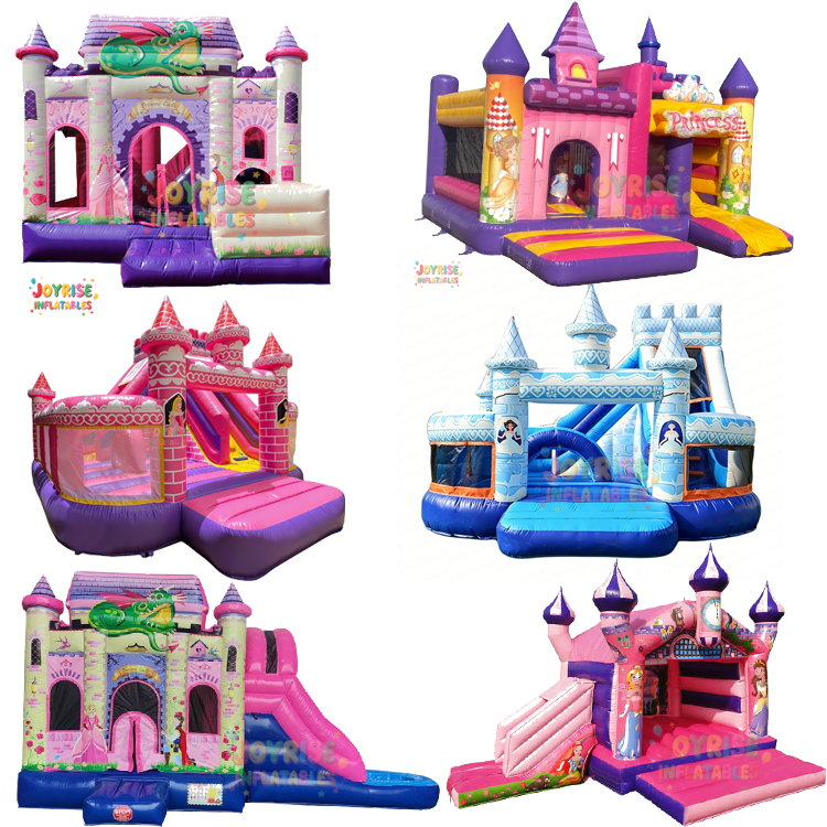 Château gonflable combiné toboggan et trampoline Princesse Rose avec souffleur et kits de réparation, château gonflable à vendre