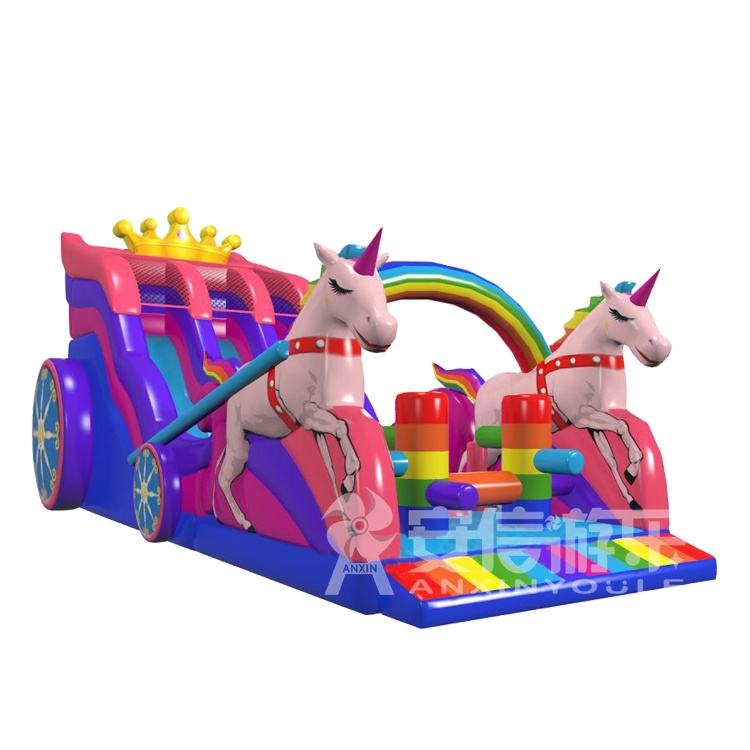Sac de rangement PVC pour princesse rose licorne gonflable double toboggan avec course d'obstacles