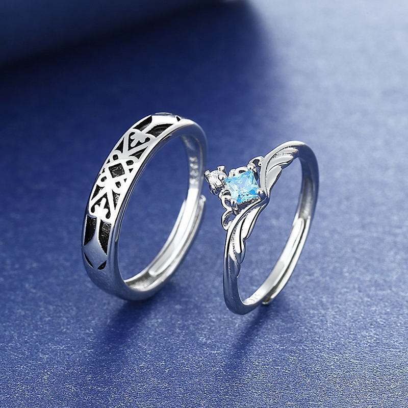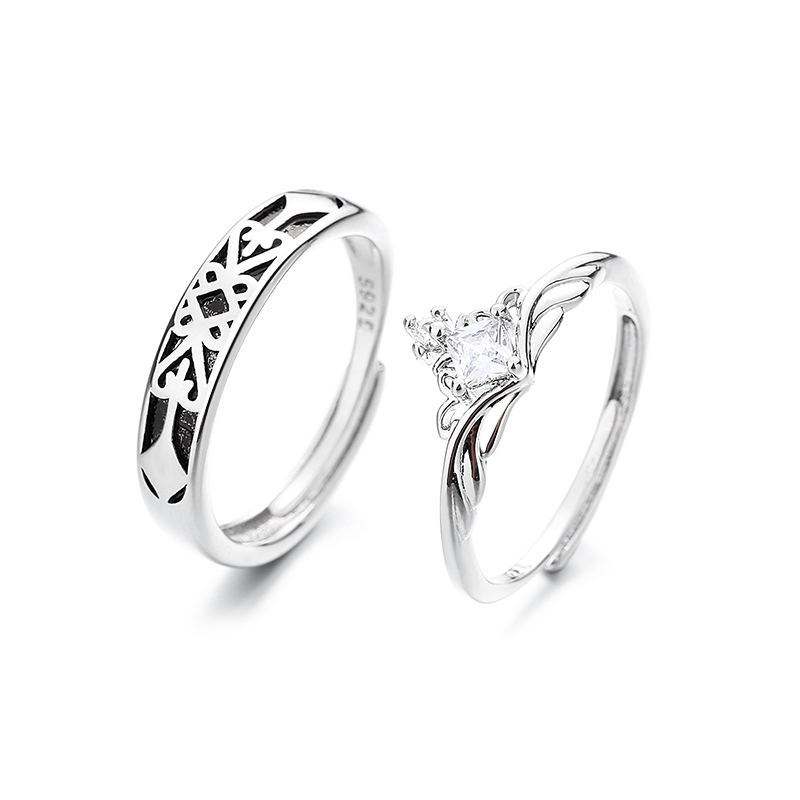 Anneau de couple Princesse et Chevalier, anneau de mariage romantique réglable en diamant, anneau de couple pour femme et homme, cadeau pour anniversaire, Saint-Valentin