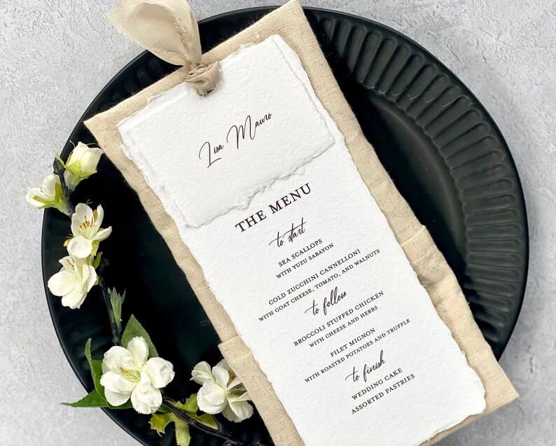 Impression personnalisée feuille d'or logo en relief carte en taille-douce impression en relief passeport en relief menu de bord avec marque-place ruban de soie